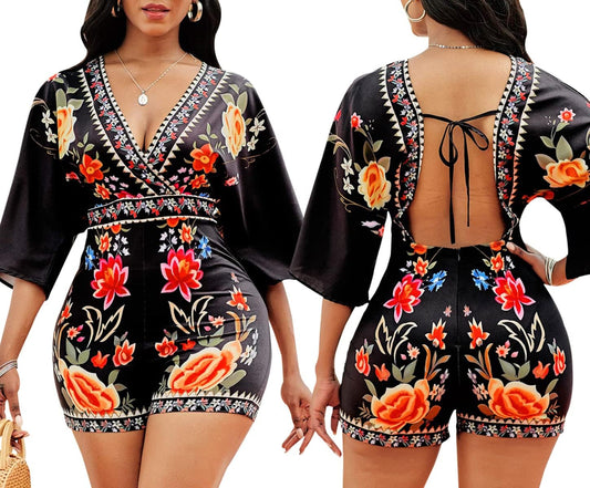 Women Boho Romper off Shoulder Ruffle Chiffon Shorts Jumpsuit Playsuit